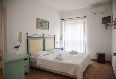 Sono ampie e comfortevoli, tutte dotate di aria condizionata, frigo bar, asciuga capelli, bagno privato con box doccia.