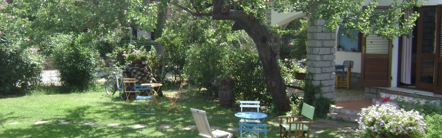 Un ampio giardino di 400 mq fa da contorno all’elegante villetta. Le stanze sono poste al piano terra con accesso diretto dal giardino. Ogni stanza ha un proprio spazio antistante all’ombra di un maestoso albicocco. Tutti gli ambienti sono dotati di bagno privato, tv, clima, wifi e frigo bar. La doccia esterna con acqua calda e fredda, è posta nel giardino retrostante ed è una piacevole coccola per i nostri ospiti.